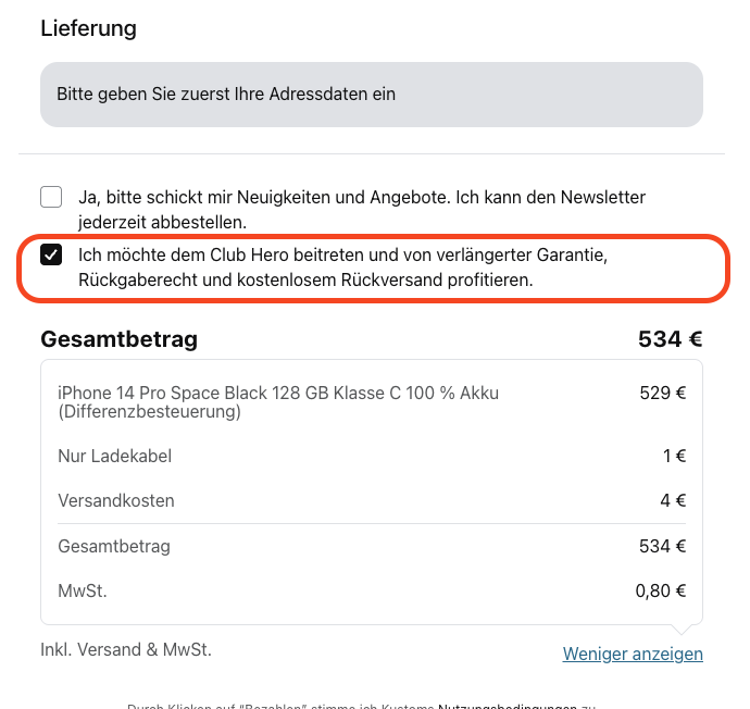 Sie werden ganz einfach Mitglied im Club Hero, wenn Sie uns ein Handy verkaufen oder einen Kauf abschließen. Siehe Abbildung auf unserer Kaufseite:
